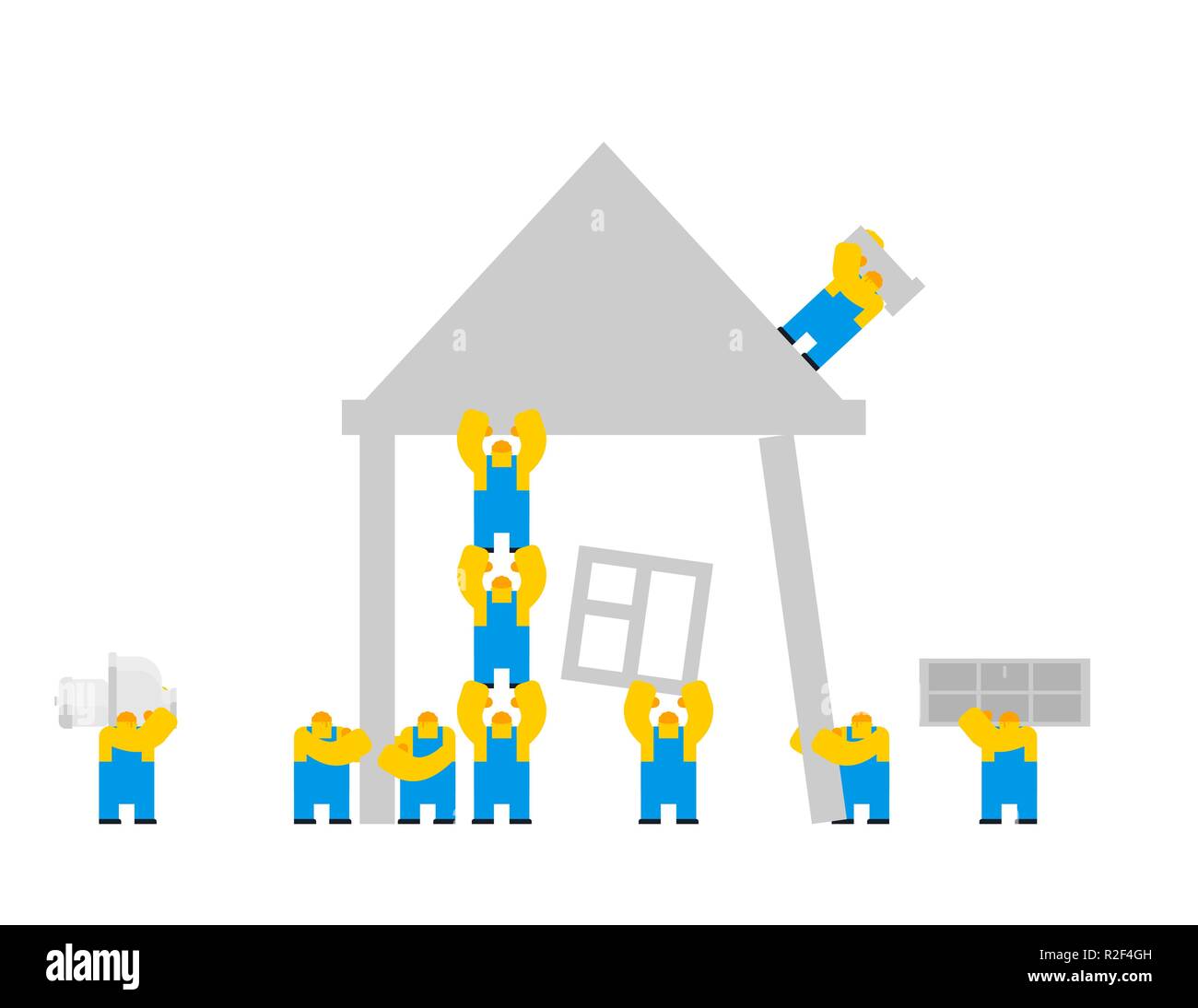 Builders Building House Cartoon Style Workers And Home Walling And Roof Construction Fastening Windows And Doors Stock Vector Image Art Alamy