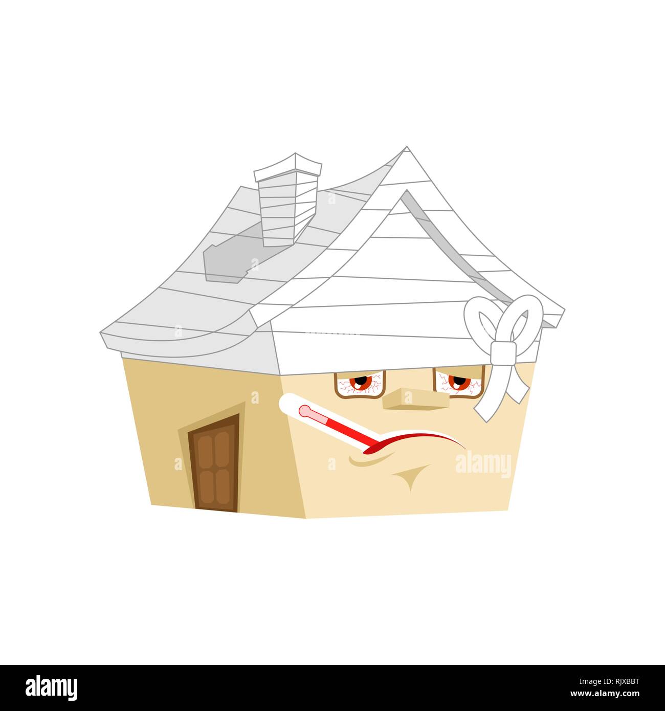 House Sick With Thermometer Isolated Ill Home Cartoon Style Building Bandaged Vector Stock Vector Image Art Alamy