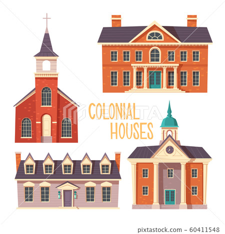 Urban Retro Colonial Style Building Cartoon Vector Set Illustration Old Residential And Government Buildings 18 Century Victorian Houses House With Balcony And Turret Isolated On White Background Premium Vector In Adobe