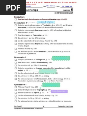 Tel est l'objet du troisième chapitre L'état de péché implique réparation il détermine l'Economie de la Loi chapitre 4 Mais ce n'est là qu'une première étape, l'étape actuelle est celle du Salut qui vient par la Foi chapitre 5, et par le moyen des Sacrements ch6. Le bon vieux temps CHAPITRE 6 CHAPTER CHECKLIST Géoculture Read and study the information on Rennes in Géoculture, pp Vocabulaire 1 Study the words and expressions in Vocabulaire 1, pp , and D'autres mots utiles, p 195 to learn how to talk about childhood memories. Scribd is the world's largest social reading and publishing site.