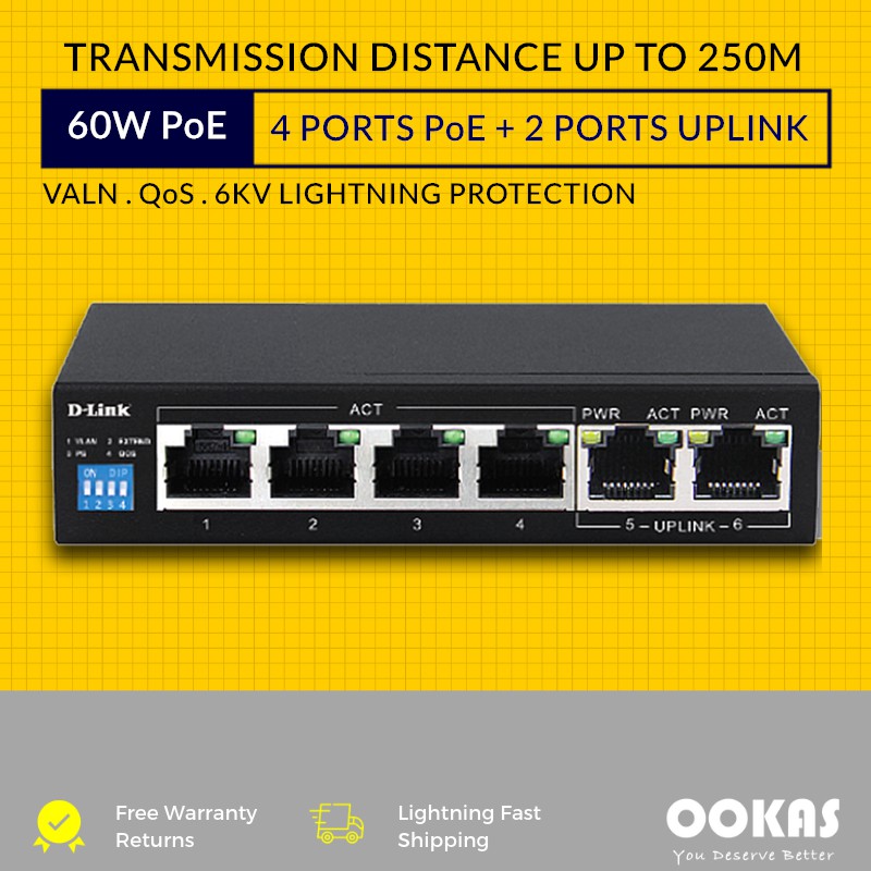 D Link Des F1006p E 250m 6 Port 10 100 Switch With 4 Poe Ports And 2 Uplink Ports Shopee Singapore