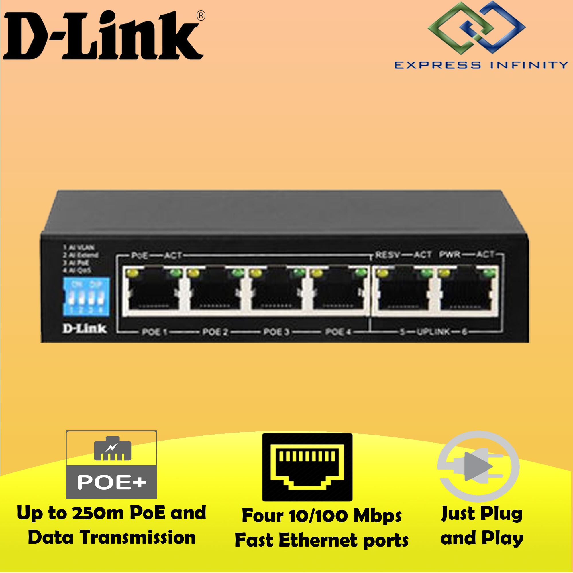 D Link Dlink Poe Switch Des F1006p E 250m 6 Port 10 100 Switch With 4 Poe Ports And 2 Uplink Ports Lazada