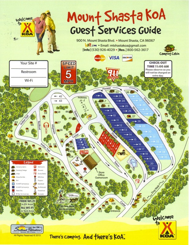 This KOA is a convenient stop on your way to Oregon Coast from the SF area Average but clean gravel campsites and beautiful view of Mt Shasta from the nearby wooded area Staff were helpful and prompt in correcting a plumbing problem one morning There's a city park nearby where you can easily walk to the Sacramento River Headwaters. Mount Shasta City KOA Ok See 84 traveler reviews, 33 candid photos, and great deals for Mount Shasta City KOA at Tripadvisor. Specialties We are a privately owned KOA campground located just 12 miles out of the majestic city of Mt Shasta, California Come join us and see what fun activities we have planned for this month!.