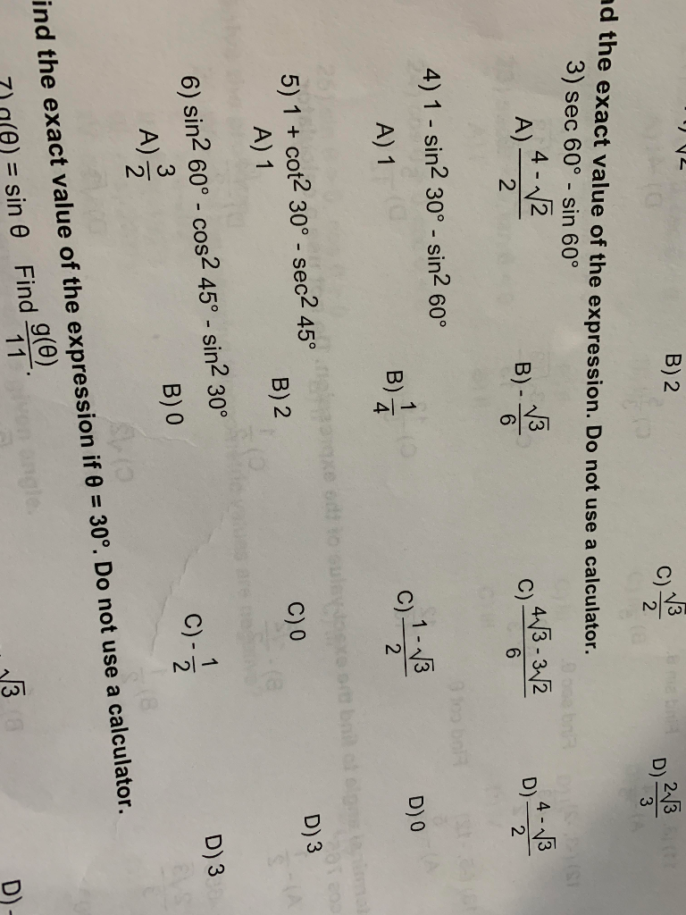 Solved B 2 C D The Exact Value Of The Expression Do No Chegg Com
