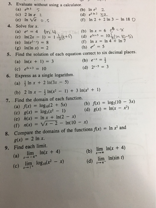 Solved 3 Evaluate Without Using A Calculator A Ens 5 Chegg Com