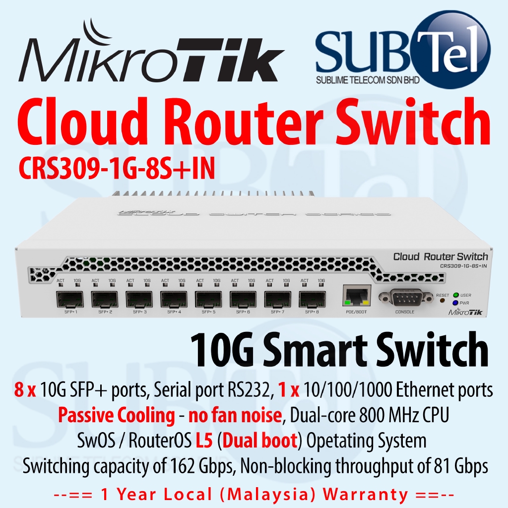 Mikrotik Smart Switch Crs309 1g 8s In 8 Ports 10g Sfp 1 Gigabit Ethernet Port Shopee Malaysia
