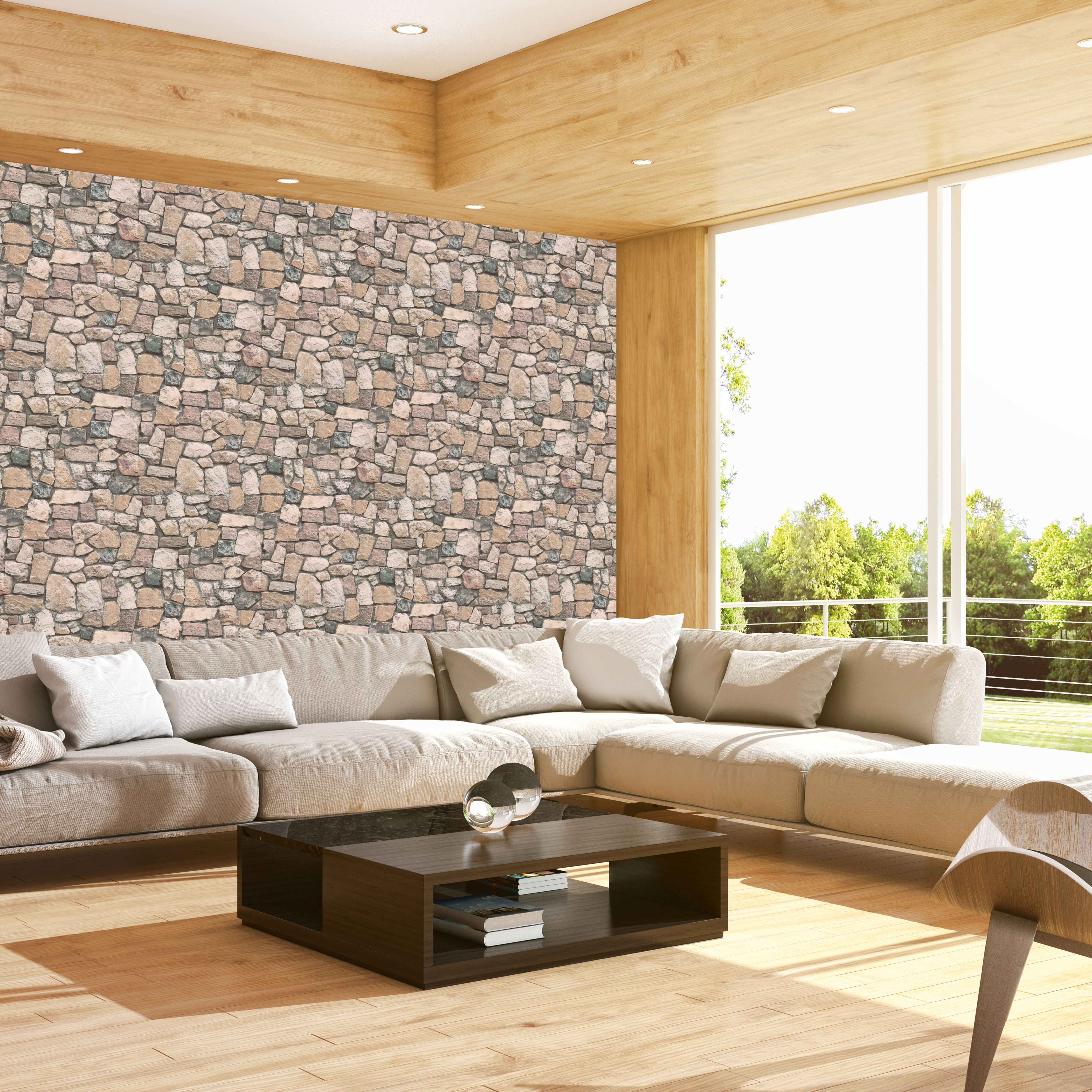 As Creation Dekora Brown Cream Grey Stone Effect Textured Wallpaper Diy At B Q