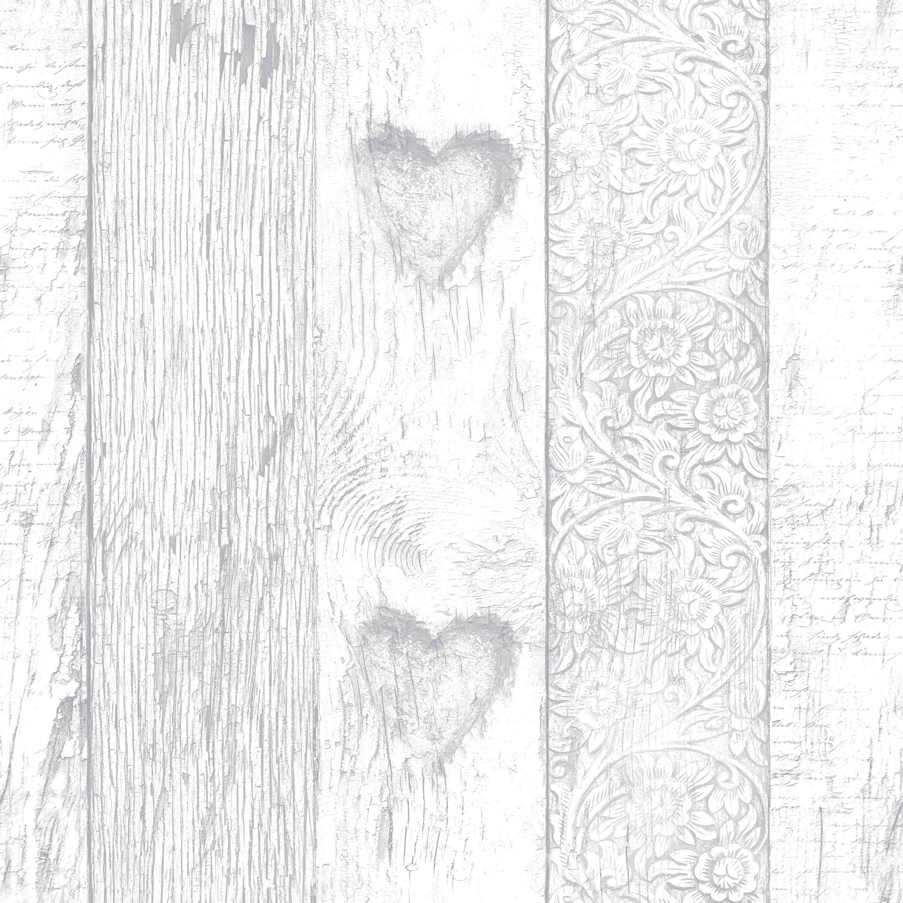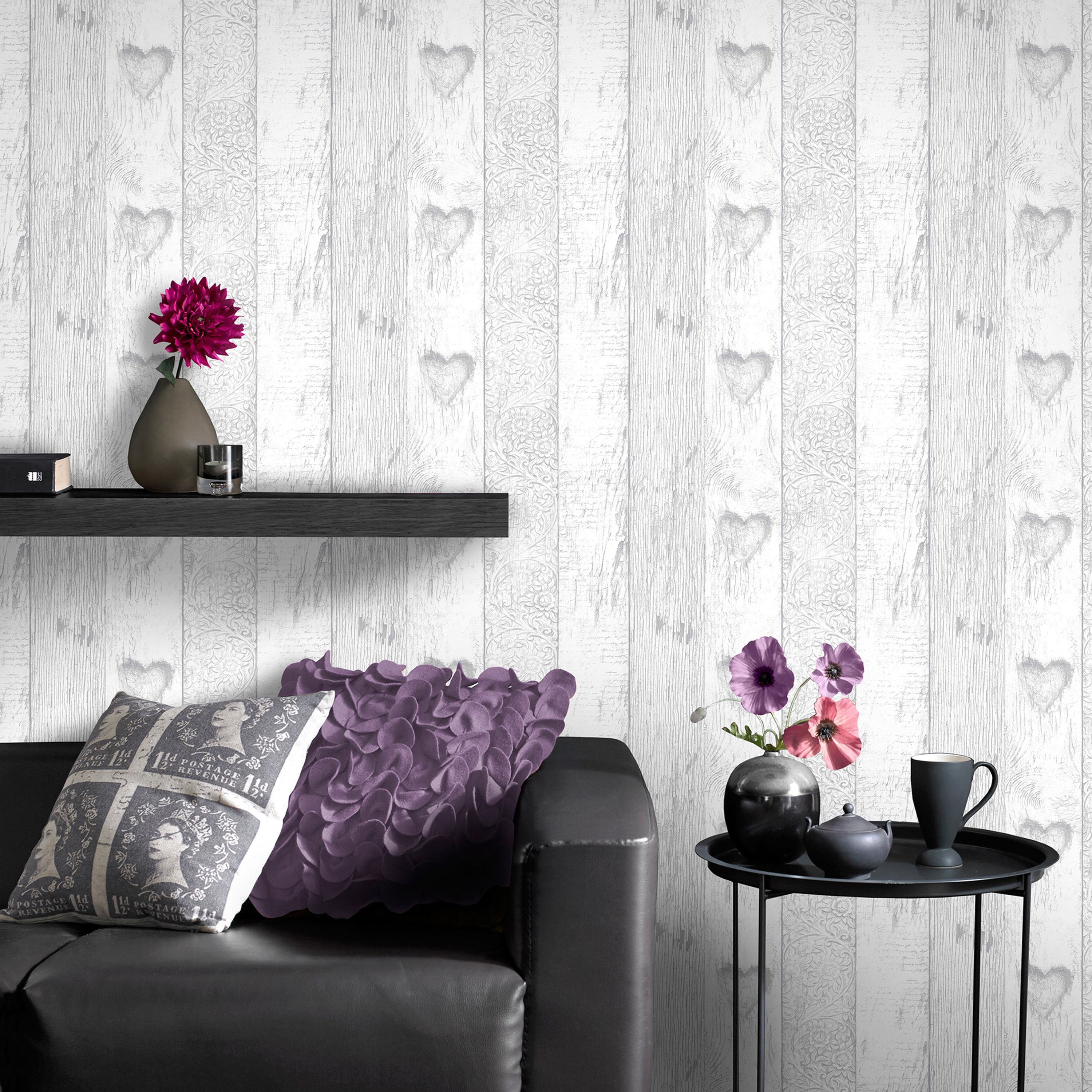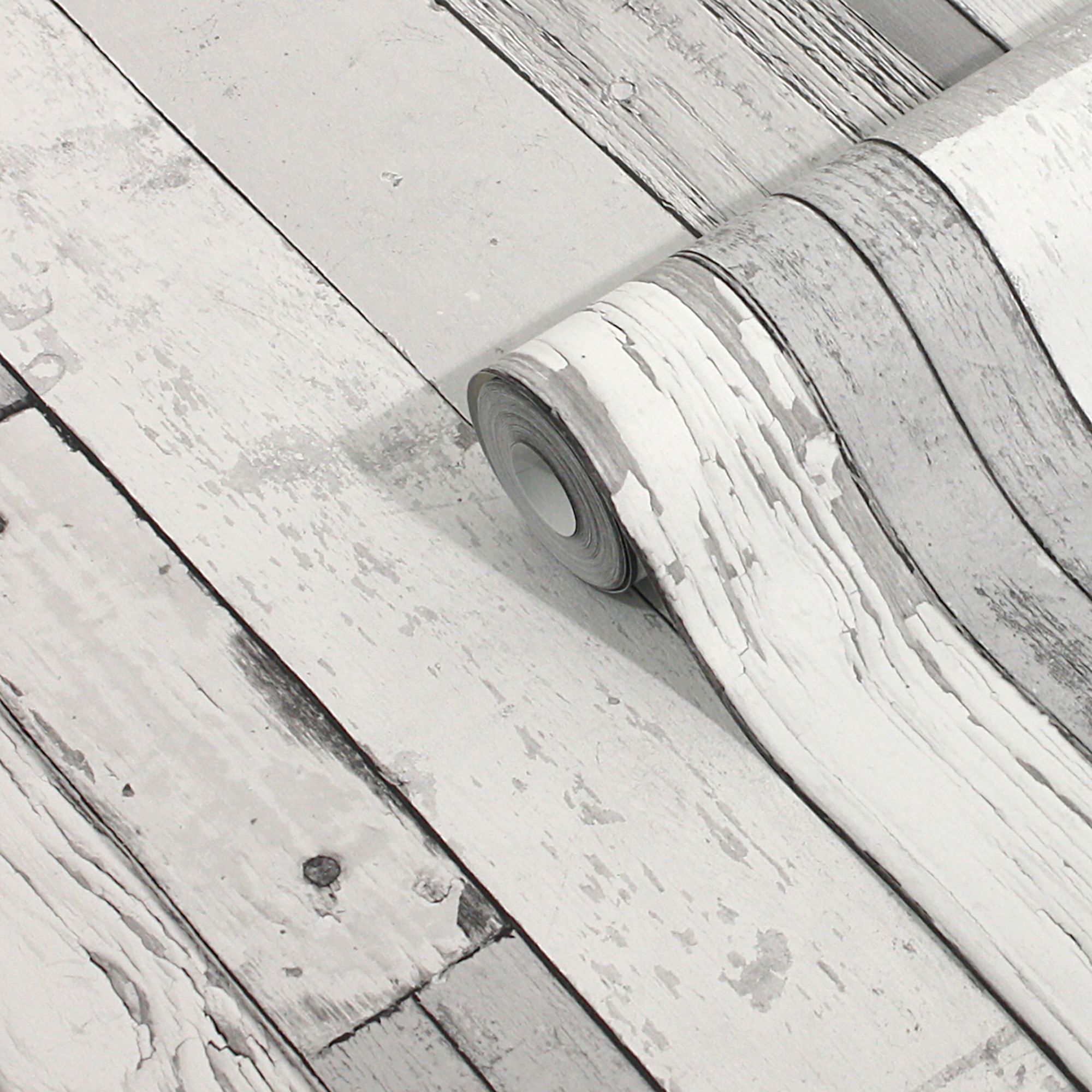Goodhome Mayet White Wood Effect Smooth Wallpaper Diy At B Q