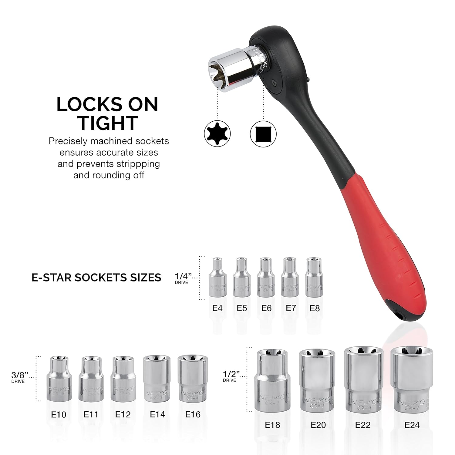 Neiko a E Torx Plus Socket Set 10 Piece External Ep6 To Ep24 1 4 3 8 And 1 2 Drive Female Star External Torx Plus Cr V Steel Amazon Com