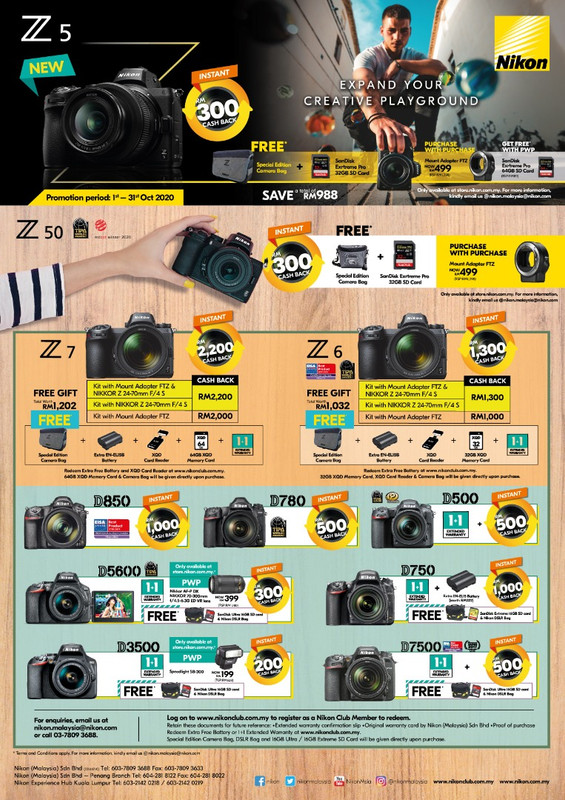 Nikon Nikon D3500 (Body Only) (Nikon Malaysia) (FREE Nikon Camera Bag & 16GB Memory Card) (INSTANT RM0 CASH BACK) CASH DEAL 0 RM 1, RM 1,900 Out Of Stock Nikon Nikon D3500 with 1855mm Lens (Nikon Malaysia) (FREE Nikon Camera Bag & 16GB Memory Card) (INSTANT RM0 CASH BACK). The great companion for your photography needs, the advanced Nikon D3500 DSLR Camera is not only featurerich but also ergonomically designed and lightweight Utilizing a DXformat 242MP CMOS sensor and EXPEED 4 image processor, the D3500 provides a native sensitivity range from ISO to suit working in a variety of lighting conditions. Introducing the Z 50, a compact, lightweight, and powerful mirrorless camera Inheriting the proud DNA of the Z series, this camera features a large inner diameter of 55mm and a short flange focal distance of 16mm – delivering incredibly vibrant images and threedimensionality without the little imperfections.