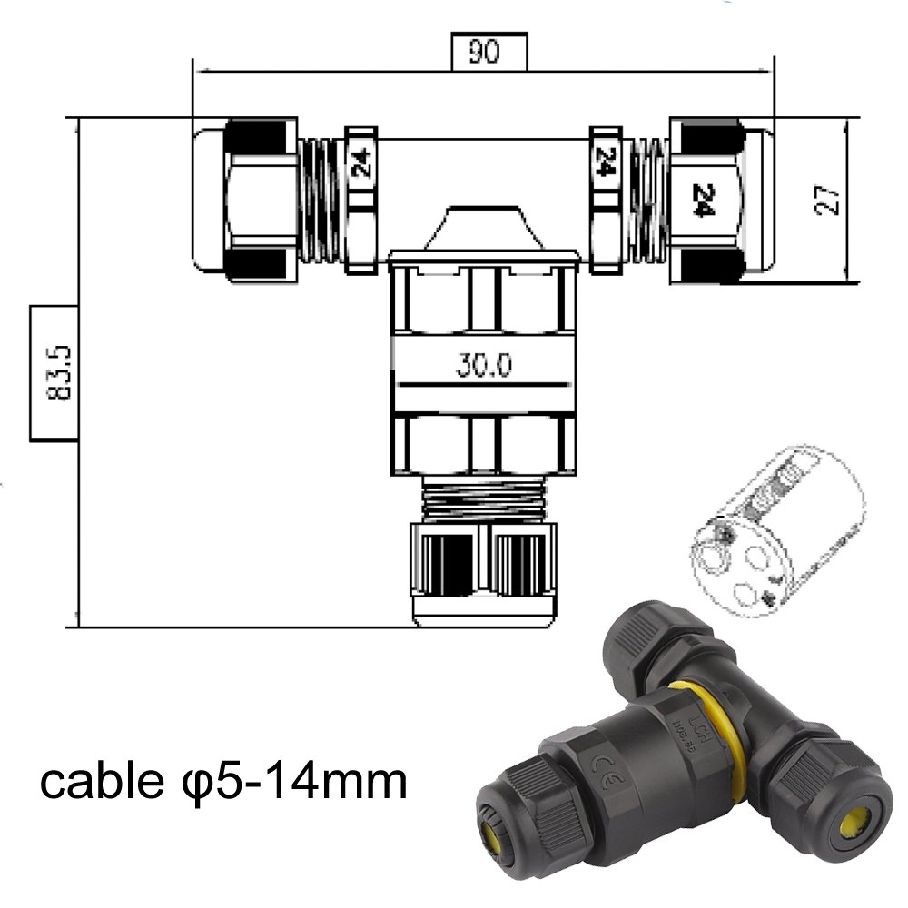 The connector snapsin to create a secure connection (as strong as the wires) between any 1228 gauge wires Detachable and reusable, perfect for any temporary installation (or even permanent ones) No need to cut tape, the TJunction is a very convenient terminal block for joining all your wires together hassle free. Waterproof Outdoor External Junction Box Cable Connector 2/3 Pin 810mm T Shape $815 $053 shipping 40m left Wire Waterproof Cable Gland For LED Light T Shape Junction Box Connector Adapter $958 Free shipping Seller 100% positive Picture Information Image not available Mouse over to Zoom. Electrical Industrial T Type Cable Connector , Find Complete Details about Electrical Industrial T Type Cable Connector,Cable Joint Connector,Electrical T Connector,T Junction Connector from Connectors Supplier or ManufacturerShenzhen Lilutong Technology Industry Co, Ltd.