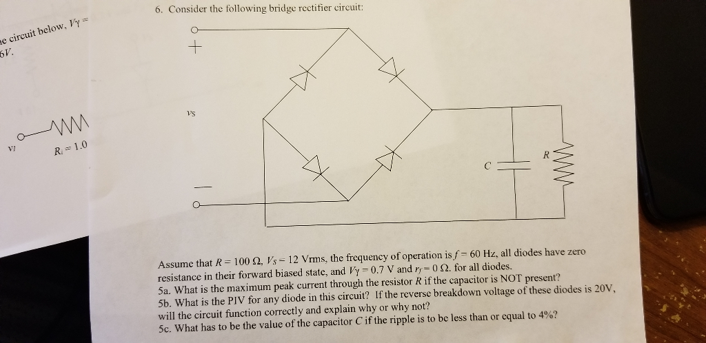 Solved 6 Consider The Following Bridge Rectifier Circuit Chegg Com