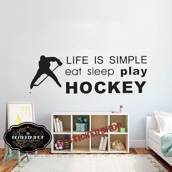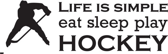 Design reads Life Is Simple, Eat, Sleep, Play Hockey Perfect for ice hockey fans and players!. Life is Simple Eat Sleep Play Hockey Wall Decal Sticker Quote Brand Homeworks Etc 50 out of 5 stars 2 ratings Currently unavailable We don't know when or if this item will be back in stock removable wall decal black matte finish vinyl water based adhesive easy application instructions included. Need a different size or font?.