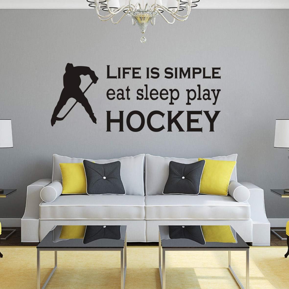 Amazon Com Hockey Sports Wall Decor Sticker Life Is Simple Eat Sleep Play Hockey Quotes Wall Decal Kids Room Boys Bedroom Wall Mural Ym 1 42x114cm Black Arts Crafts Sewing