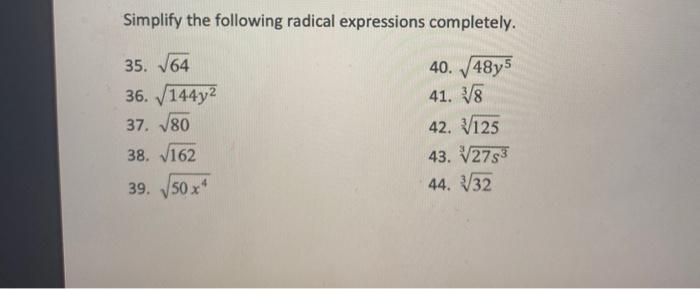 Solved Simplify The Following Radical Expressions Complet Chegg Com