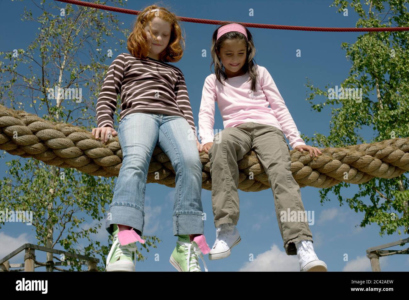 Two Girls On A Jungle Gym Stock Photo Alamy
