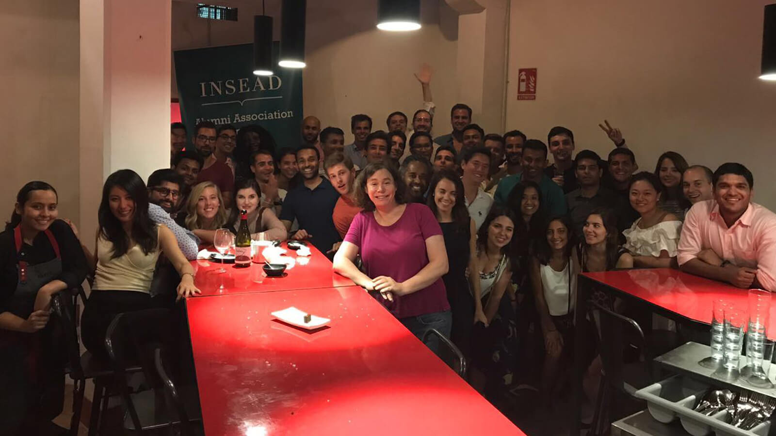 Each guest sits on a corner of a cube.