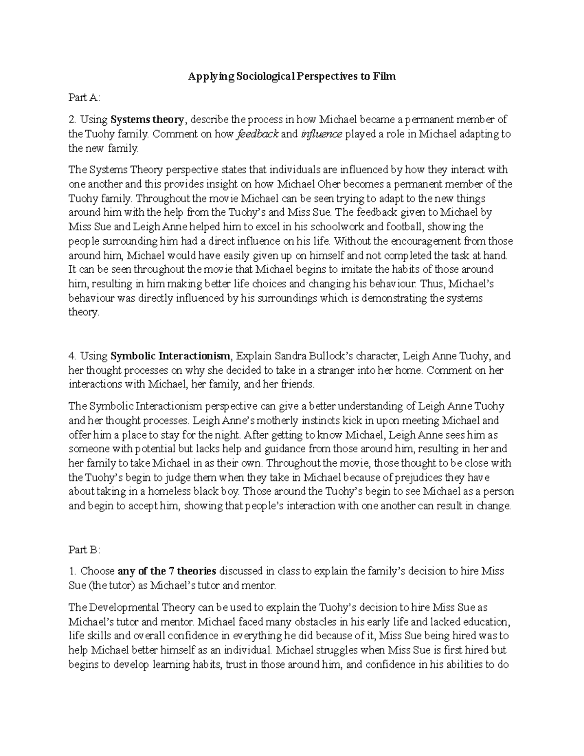 Applying Sociological Perspectives To Film The Blind Side Studocu