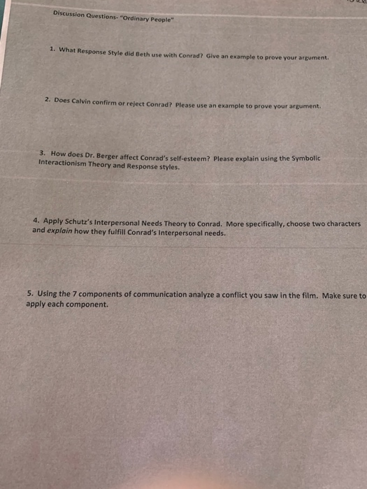 Solved Discussion Questions Ordinary People 1 What Re Chegg Com