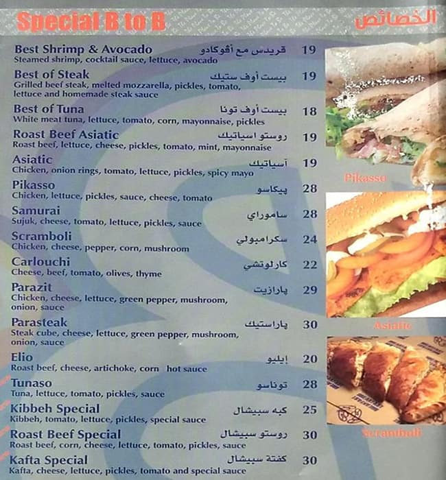 B B Cafe Restaurant مطعم وكافيه بي آند بي Menu