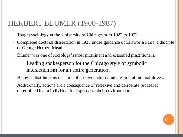 Symbolic interactionism is a sociological theory that develops from practical considerations and alludes to people's particular utilization of dialect to make images and normal implications, for deduction and correspondence with others Symbolic Interactionism Theory The theoryâ s argument regards the world as socially constructed. Is sociological term, used for the situation;. Blumer's symbolic interactionism is a theory in sociology that focused in the 1930s on the study of interaction between people and brought in field studies as the data collection method of choice (Blumer, 1968).