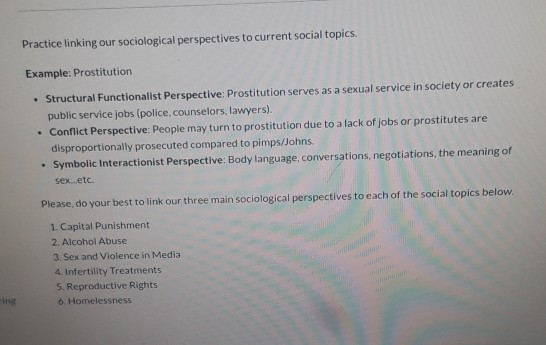 Practice Linking Our Sociological Perspectives To Chegg Com