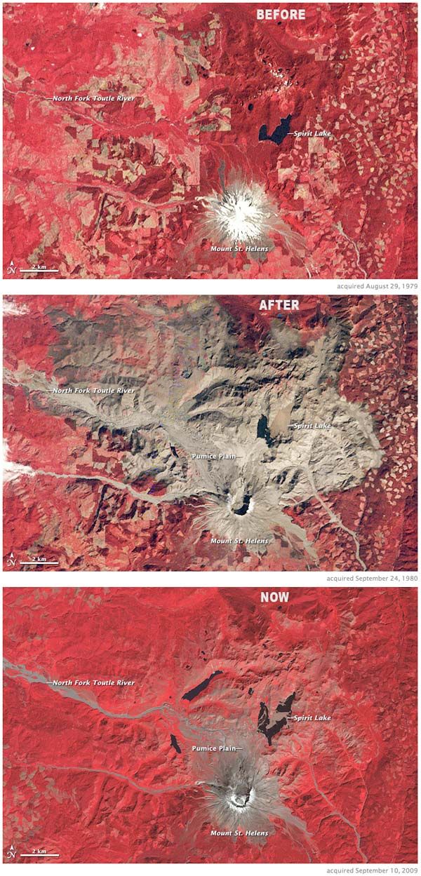 Mt st helens before and after eruption. Mount St Helens on May 17, 1980, the day before the eruption Image Source Wikimedia Commons Prior to 1980, a dense forest covered the land around Washington’s Mount St Helens, supporting a thriving ecosystem and a small logging village. Highaltitude colorinfrared photographs of the Mount St Helens region "before" and "after" the eruption of May 18, 1980 Note the changes in the shoreline of Spirit Lake (upper right corner) Green vegetation unaffected by the eruption appears as red (Photographs courtesy of NASA). Highaltitude colorinfrared photographs of the Mount St Helens region "before" and "after" the eruption of May 18, 1980 Note the changes in the shoreline of Spirit Lake (upper right corner) Green vegetation unaffected by the eruption appears as red (Photographs courtesy of NASA).