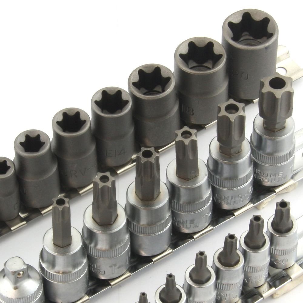 E24 Torx Socket Set 1 4 3 8 1 2 Drive Female Torx Star E Sockets On Rail E4 Tool Set Vehicle Sockets Socket Sets