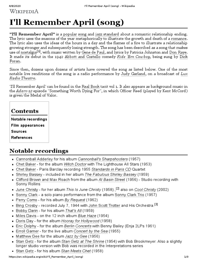 I Ll Remember April Song American Jazz Musicians Jazz Musicians