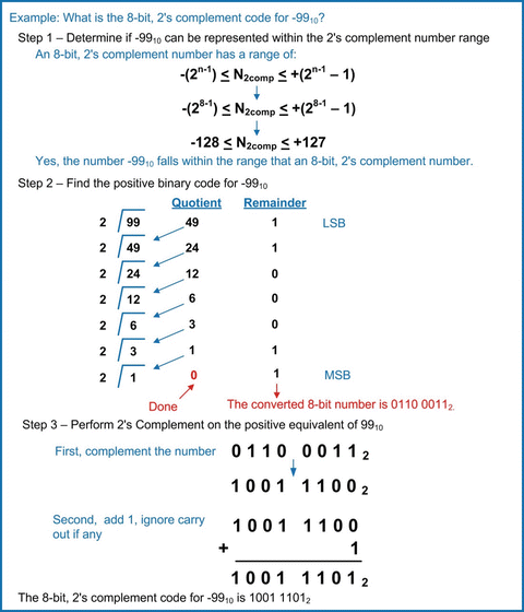 99 / 2 = 49 with 1 remainder 49 / 2 = 24 with 1 remainder 24 / 2 = 12 with 0 remainder 12 / 2 = 6 with 0 remainder 6 / 2 = 3 with 0 remainder 3 / 2 = 1 with 1 remainder 1 / 2 = 0 with 1 remainder Then, when we put the remainders together in reverse order, we get the answer The decimal number 99 converted to binary is therefore.