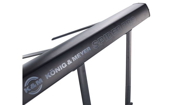 Anodized aluminum The »Spider Pro« is the further development of the »Spider« keyboard stand The »Spider Pro« is equipped with a pair of extendable support arms, as well as an additional pair of extendable support arms with a 15° tilt angle The »Spider Pro« can be fitted with additional support arms for a third keyboard. K&M 160 Spider Pro Keyboard Stand, Black The K&M 160 Spider Pro Stand features an ergonomic design for an optimum hold on your keyboard The intuitive spider leg base benefits the weight distribution and stability of the stand, making it suitable for uneven surfaces The two tiers can each hold up to 35kg of weight, making this unit ideal for gigging musicians. Keyboard Stand Spider pro Further development of the Spider keyboard stand, Improved stand tilt to make playing a second keyboard more comfortable, Sturdy aluminium profile column, 4 Aluminium tube feet, 2 Levels for keyboard, 2 Extendable support.