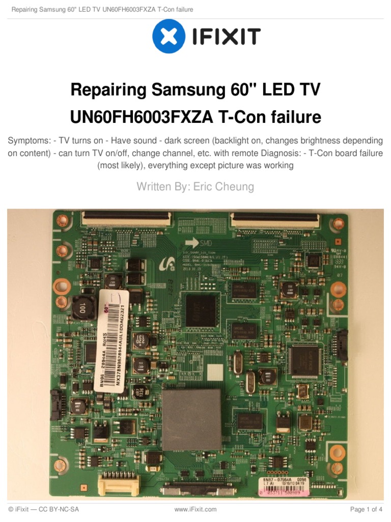 Repairing Samsung 60 Led Tv Un60fh6003fxza T Con Failure Ifixit Repair Guide
