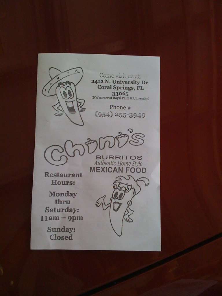Chini S Burritos Menu Menu For Chini S Burritos Coral Springs Miami