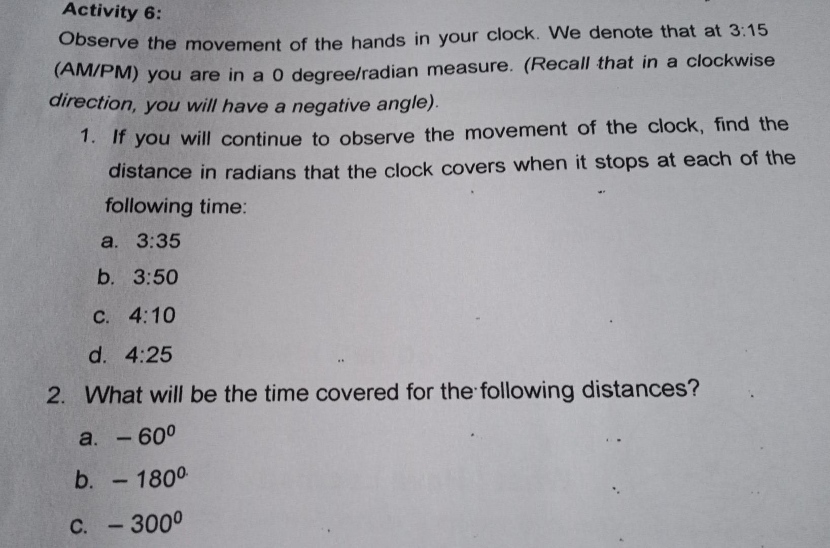 Solved Observe The Movement Of The Hands In Your Clock W Chegg Com