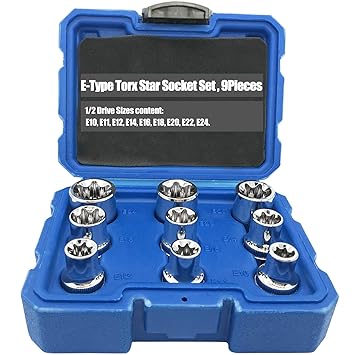 Each socket is constructed to withstand the highforce of impact drivers and coated to resist rust A great set of star sockets to replace Torx fasteners and get you back on the road!. NoEnName_Null Crv material 14pcs/set E Torx Star Female Bit Socket Set 1/2" 3/8" 1/4" Drive Sold by ebuytrade an eBay Marketplace seller add to compare compare now $3747 Ab Tools Female Impacted E Torx Star Sockets E5 E24 3/8" and 1/2" Drive 17pc Set Sold by abtools_usa. LEXIVON ETORX Socket Set, Chrome Vanadium Alloy Steel 13Piece Female Star Socket E4 E Set Enhanced Storage Case (LX147) 48 out of 5 stars 421 $1597 $ 15 97 $2197 $2197.