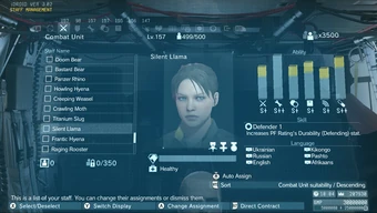 Target Practice (R&D Platform) 153 Target Practice (Support Unit Platform) 154 Target Practice (Base Development Platform) 155 Target Practice (Intel Team Platform) Metal Gear Solid V 15. Secret quick way to level up any staff on Mother Base in the game Metal Gear Solid V The Phantom Pain Learn how to use FOB Events to upgrade stats of your. The Combat Unit was the main fighting/sneaking force of the Militaires Sans Frontières and source of income, and was present since its foundation It mainly contained Guerillas, Infantries, Commandos, Elite Commandos, Commanders, and Sharpshooters After their Mother Base was renovated to include a Honeycomb design, the Combat Unit was stationed at the Hangar portion of Mother Base, which.
