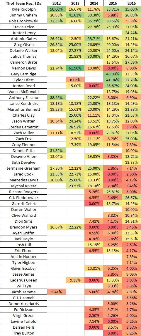 Rich Hribar Percent Of Team Receiving Tds For Tes Over The Past Five Years