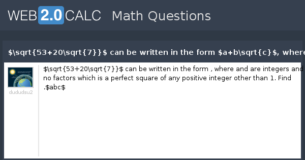 View Question Sqrt 53 Sqrt 7 Can Be Written In The Form A B Sqrt C Where A B And C Are Integers And C Has No Factors Which Is A Perf