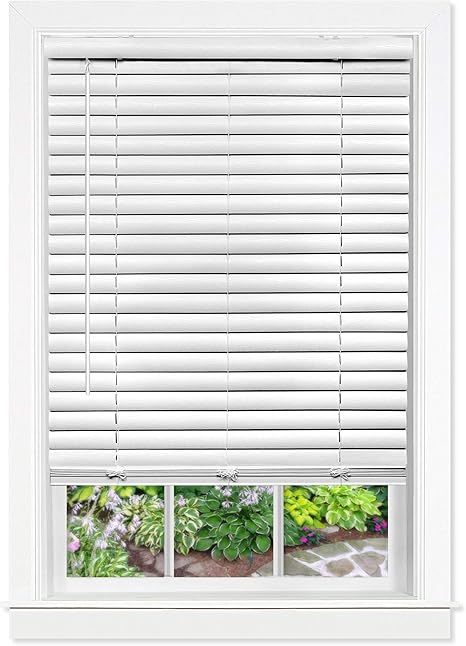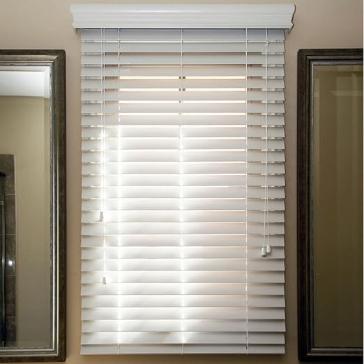Amazon Com Achim Home Furnishings White Cordless Gii Madera Falsa 2 Faux Wood Plantation Blind 35 X 64 Home Kitchen