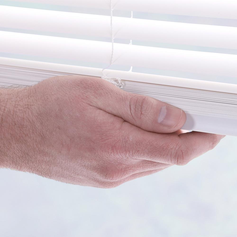 White Cordless 1 In Vinyl Mini Blind 35 In W X 64 In L The Home Depot