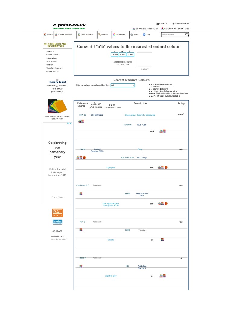 Convert L A B Values To The Nearest Standard Colour Celebrating Our Centenary Year Business