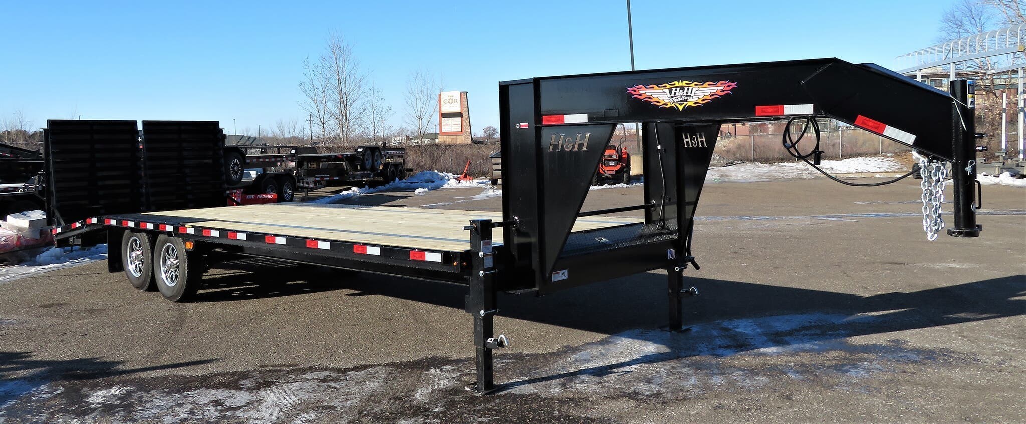 H&H professional grade equipment trailers are designed to handle your heavier hauling needs Whether you need to haul a fuel tank or skid steer, rest assured they are designed to withstand your most demanding loads. Find new and used H & H Trailers for sale at Fastline Our database is full of premium farming and utility equipment at competitive prices. H&H Trailers for Sale in Minnesota H&H manufactures some of the most reliable trailers in the industry, offering a wide variety of sizes and types like open utility, flatbed, tilt deck, dump and sled trailers and enclosed car hauler, cargo and sled trailers in both steel and aluminum frames.