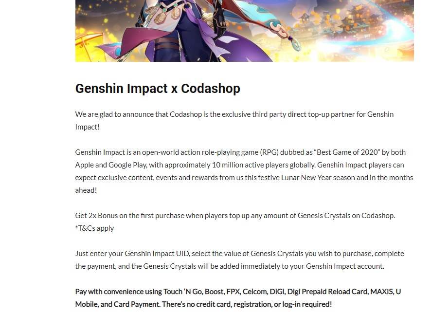 Codashop Exclusive 3rd Party Top Up Vendor X Genshin Impact Genshin Impact Official Community