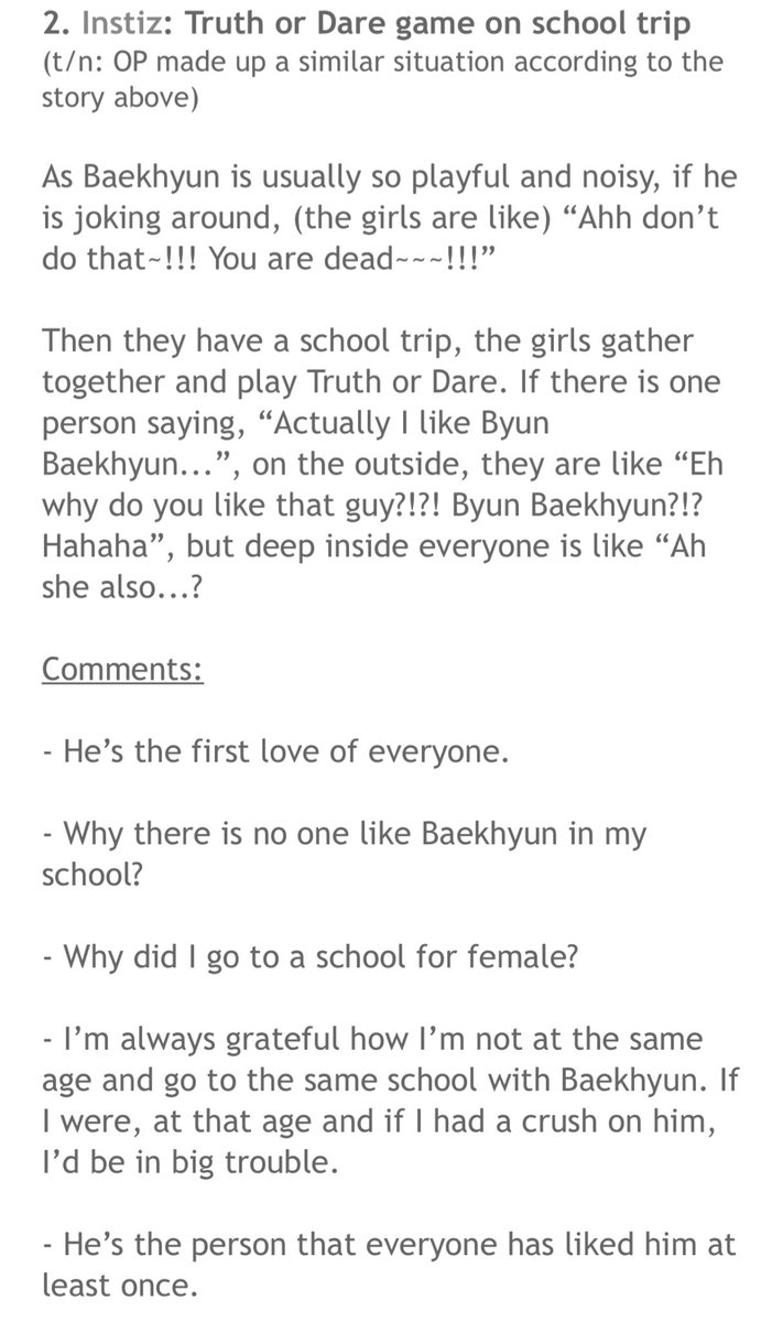 Light Instiz Truth Or Dare Game Anecdote About Baekhyun He Was So Popular To The Extent That When The Girls Gathered Together And Played Truth Or Dare Game His Name
