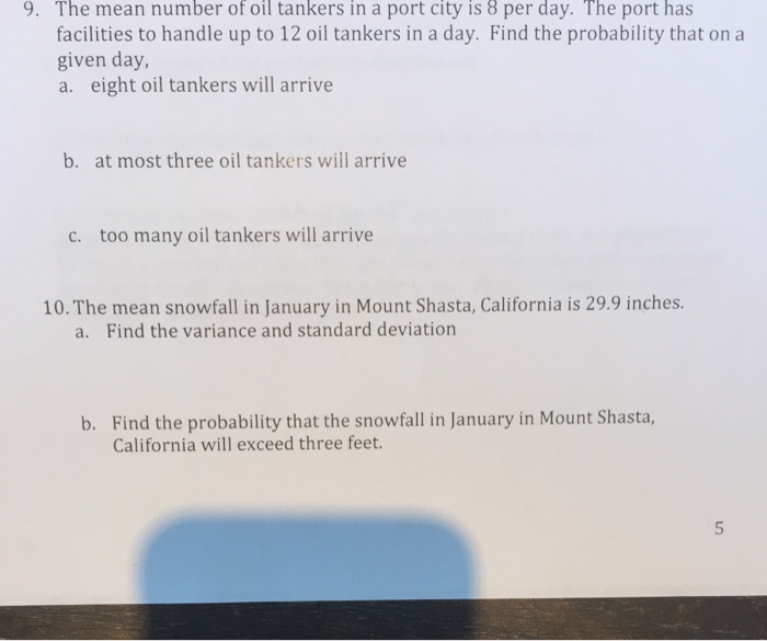 Solved The Mean Number Of Oil Tankers In A Port City Is 8 Chegg Com