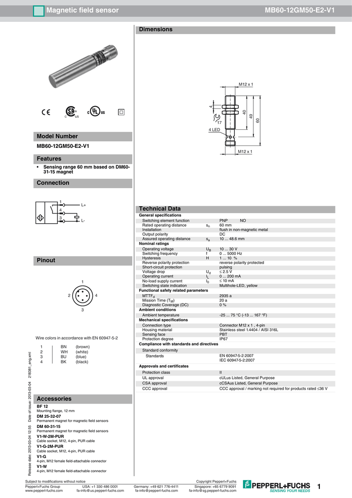Magnetic Field Sensor Mb60 12gm50 E2 V1 Dimensions Model Number Manualzz