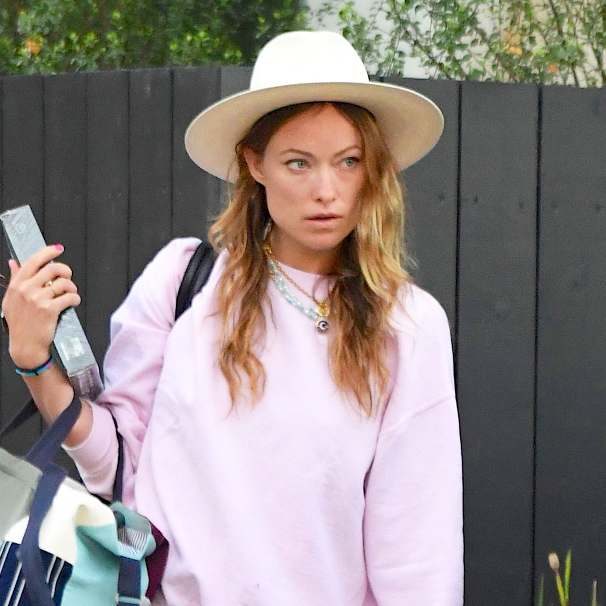 Olivia Wilde Wears Harry Styles Golden Pearl Necklace
