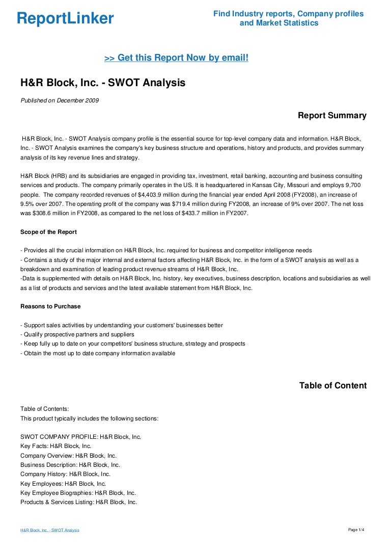 H R Block Inc Swot Analysis