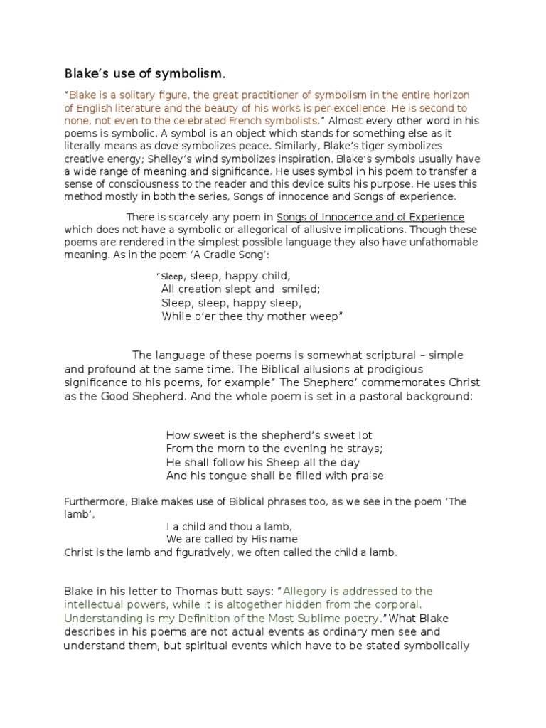Blake S Use Of Symbolism Poetry Religion And Belief