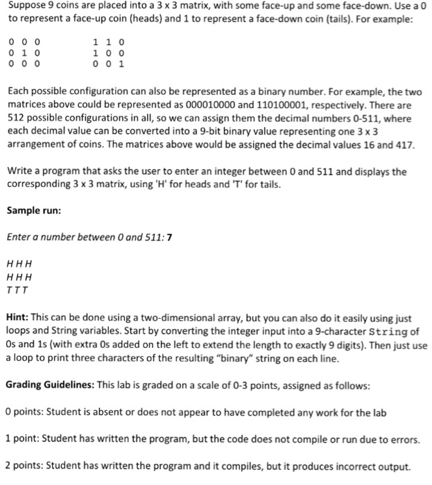 Solved Suppose 9 Coins Are Placed Into A 3 X 3 Matrix Wi Chegg Com